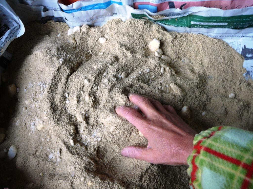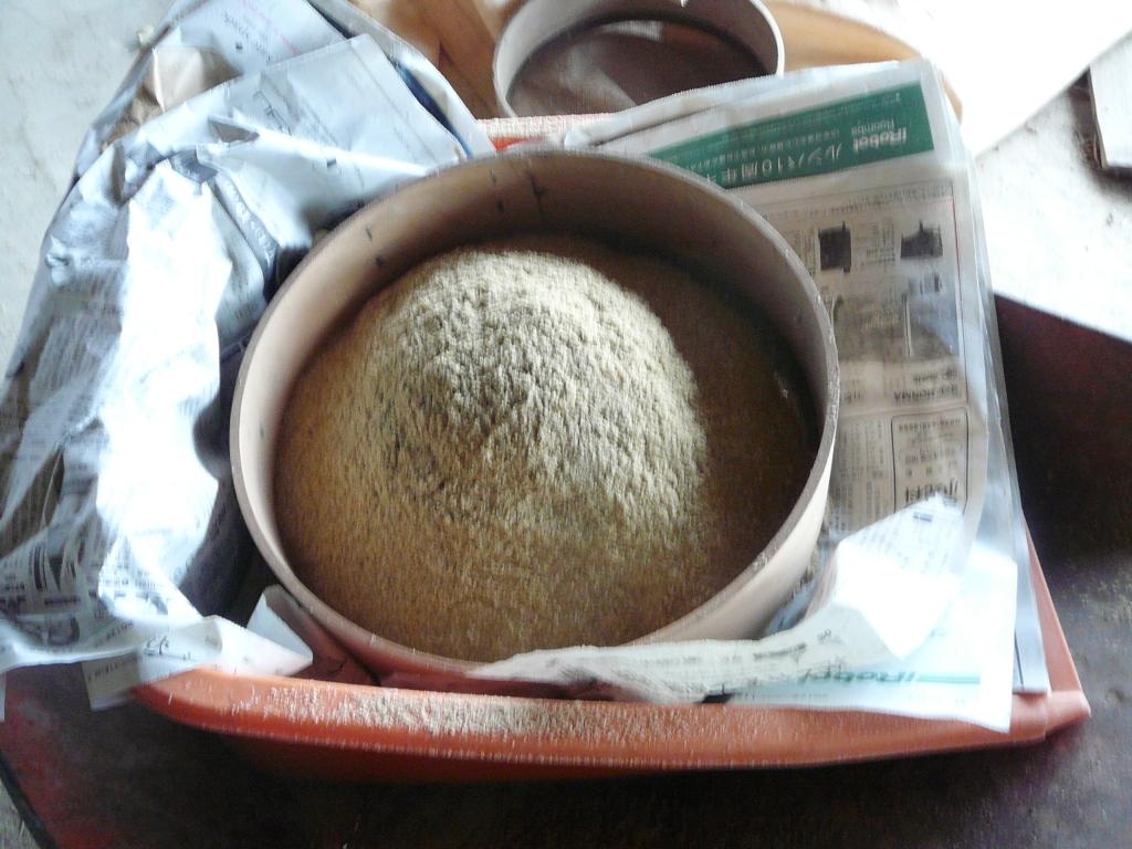 沢庵の糠をふるいにかける