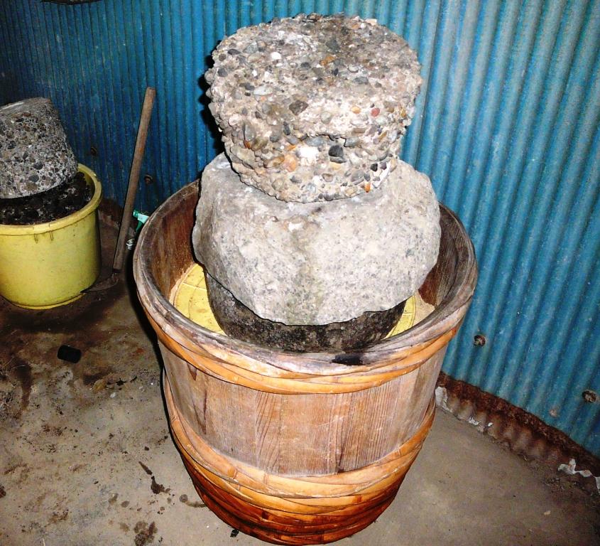 食べ終わった樽はよく洗い逆さにして樽の底に水を張り塩を1つかみ100gくらい混ぜて干しておく。そうすれば樽の底に隙間があかず長持ちする。