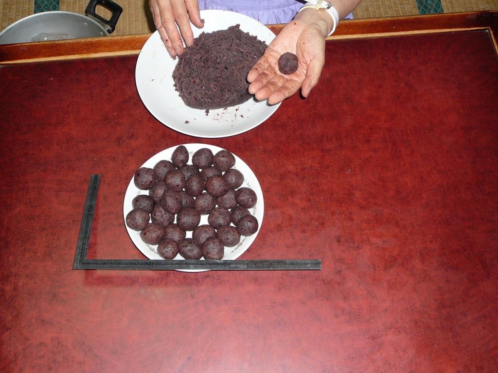 あんを丸める。この時2センチ~3センチ位の大きさにする。