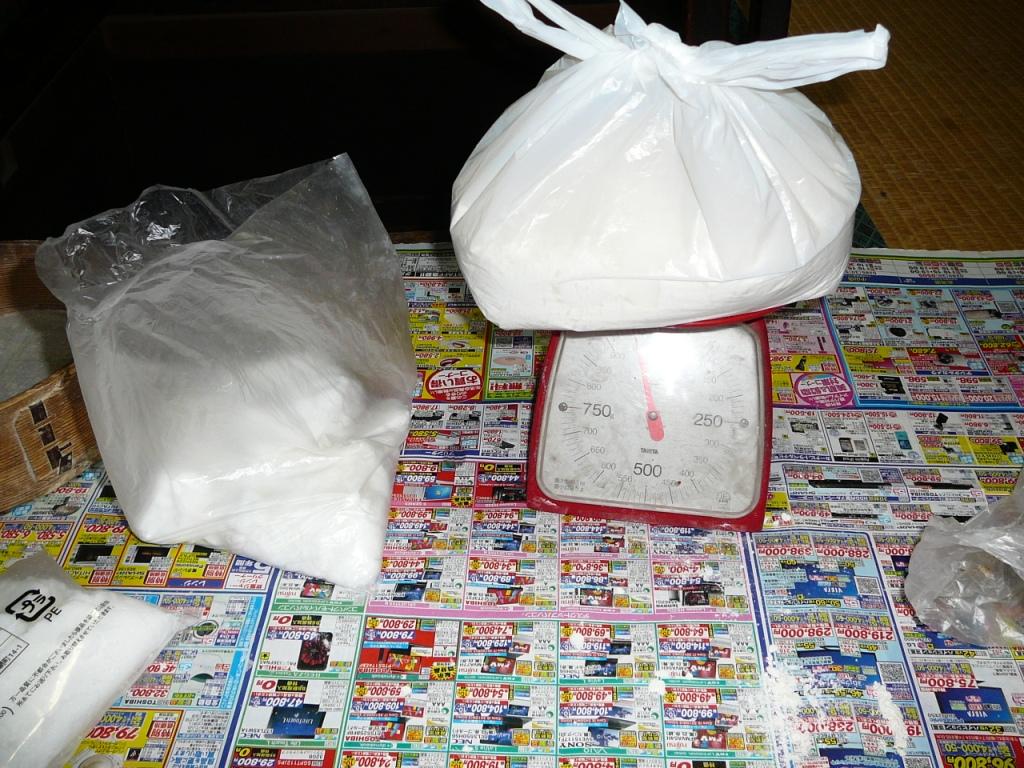 小麦粉1キロ 炭酸水素ナトリウム(重曹)35g(多すぎると苦くなる)砂糖600g~700g(甘め)