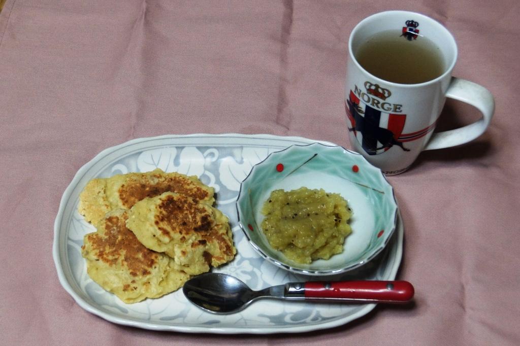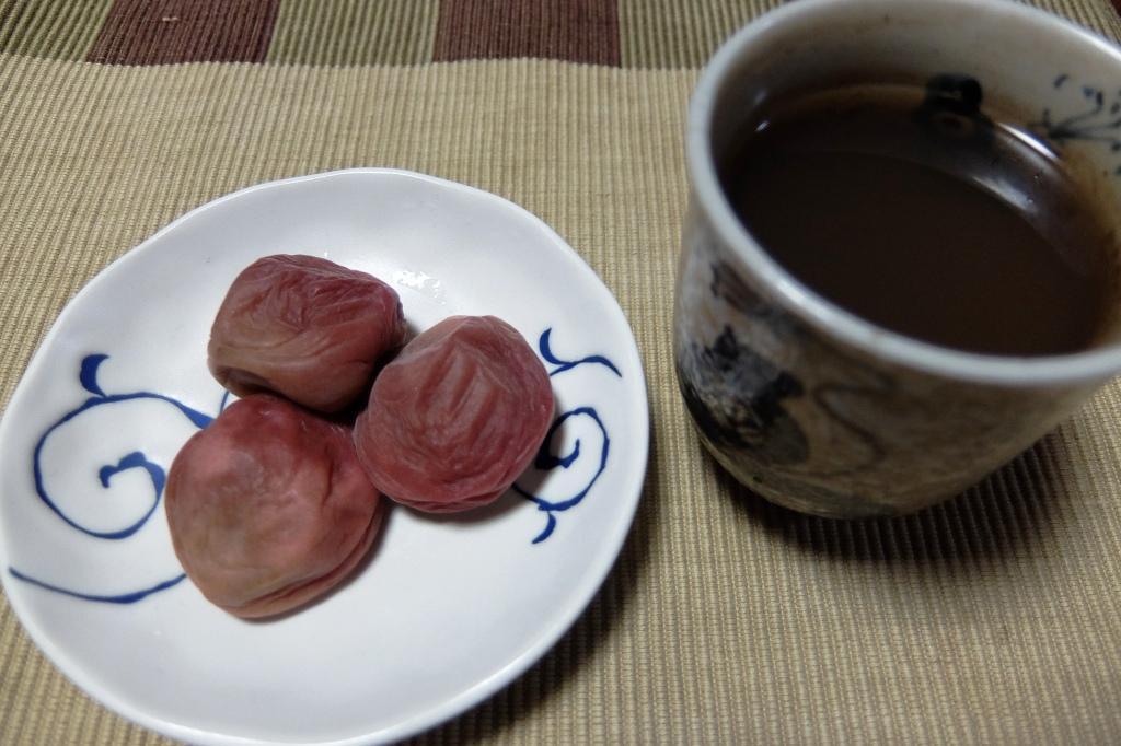 3時のお茶には、梅干と橋本農園のはとむぎ茶。