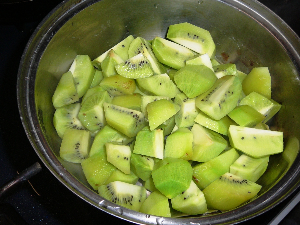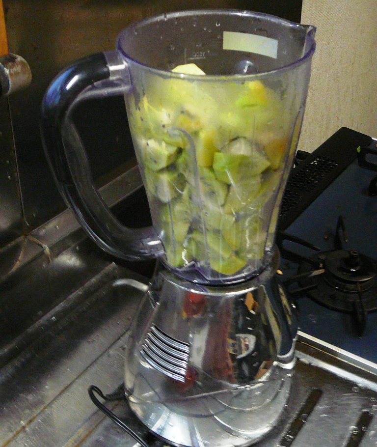 キウイは皮をむいてミキサーで砕くあ(包丁で砕いても良い)