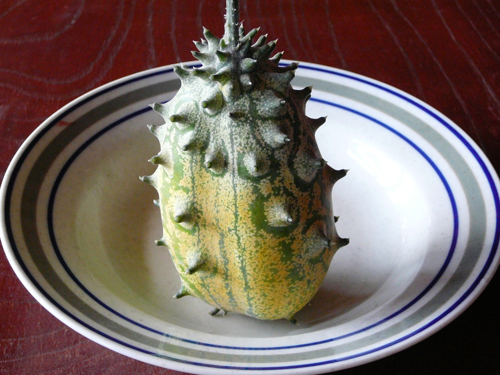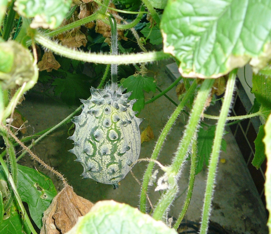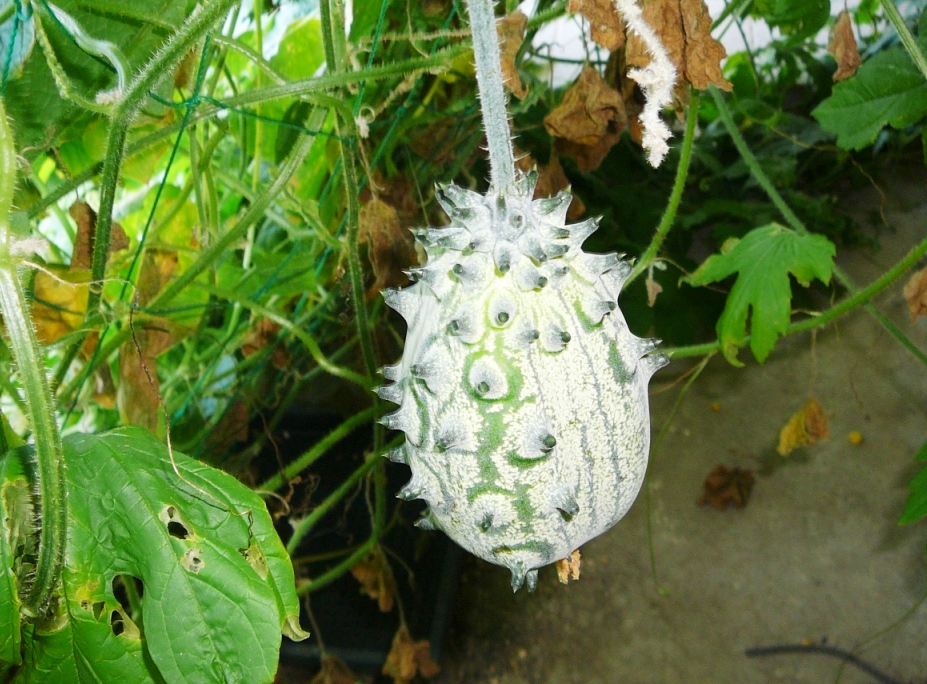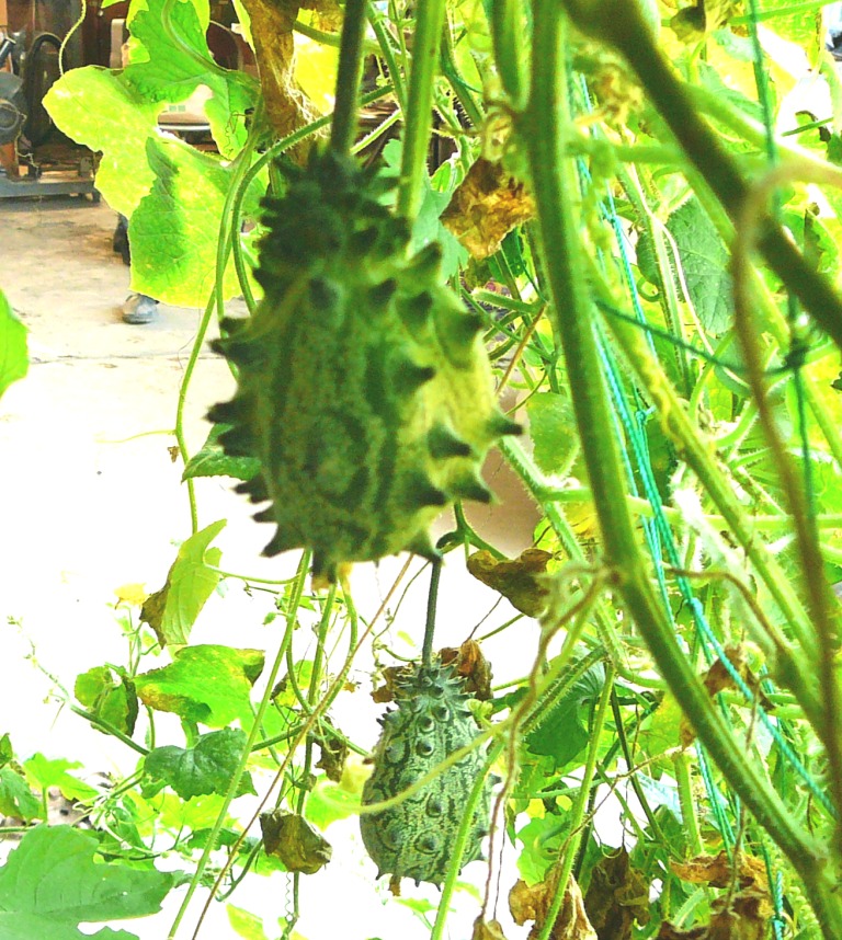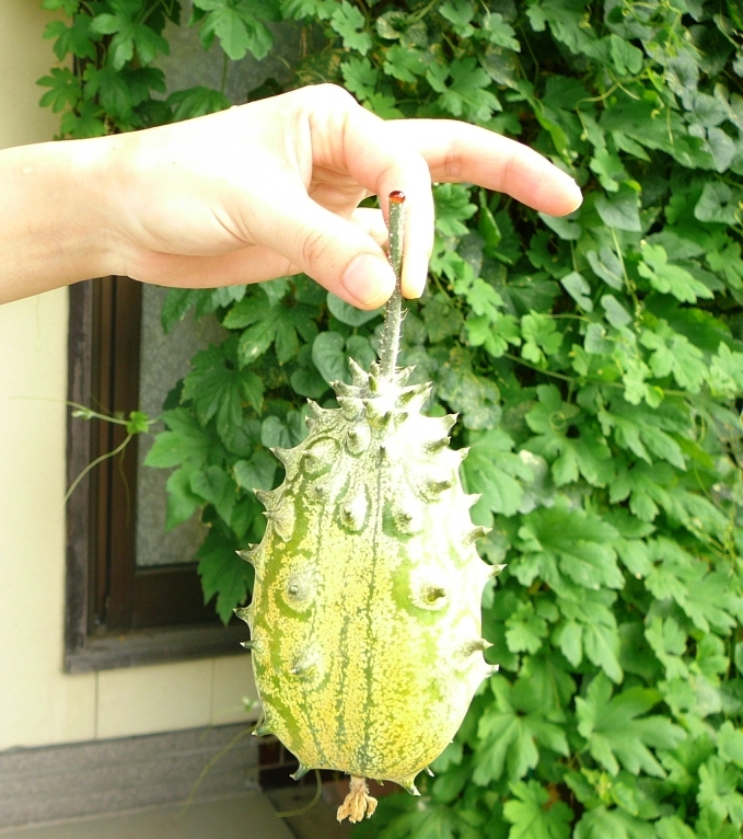 一見ゴーヤに似ているが、ややまあるい。とげとげもある。金平糖のようだ。