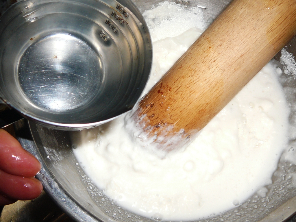白玉粉を水と砂糖でよく混ぜる。