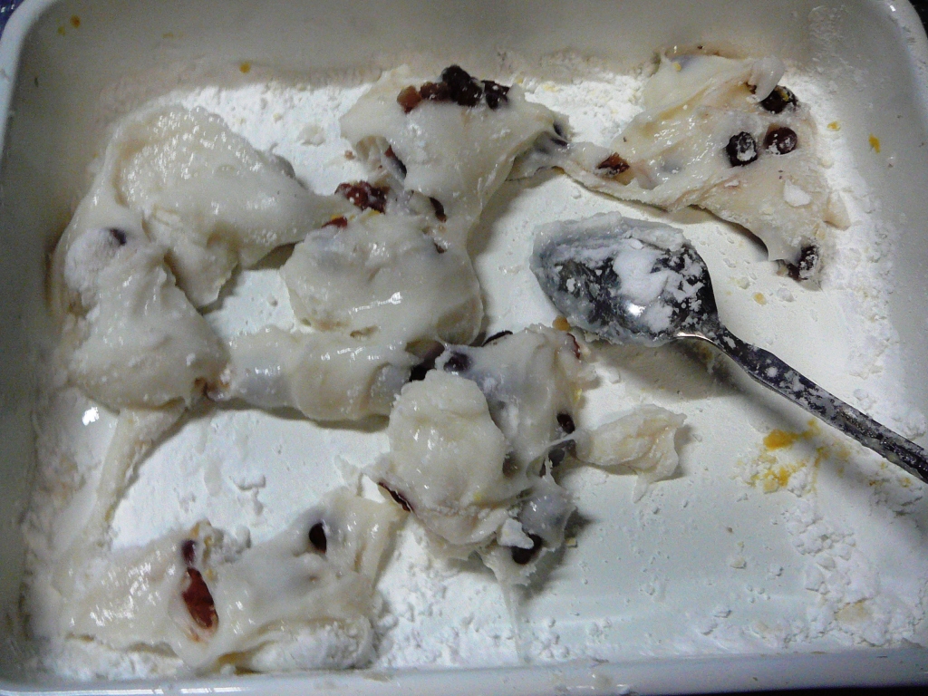 豆大福にするので甘納豆を皮に混ぜた。