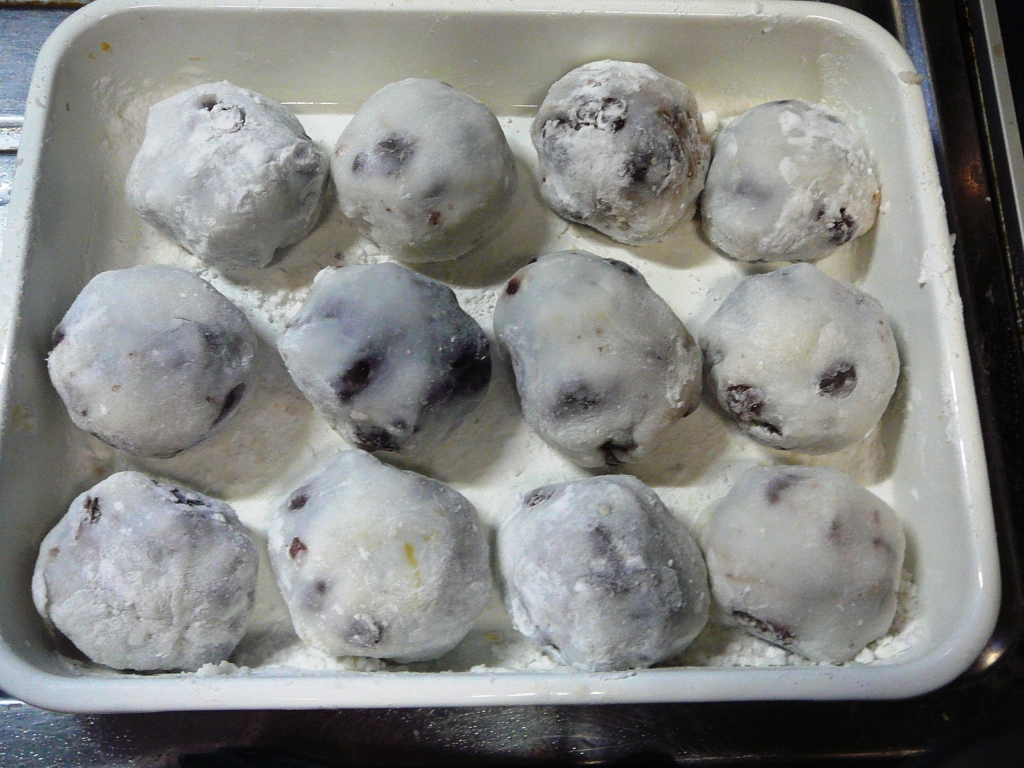 夏に作ったあん(冷凍庫保存)を出して丸めた。あんの作り方(ブログ記事)