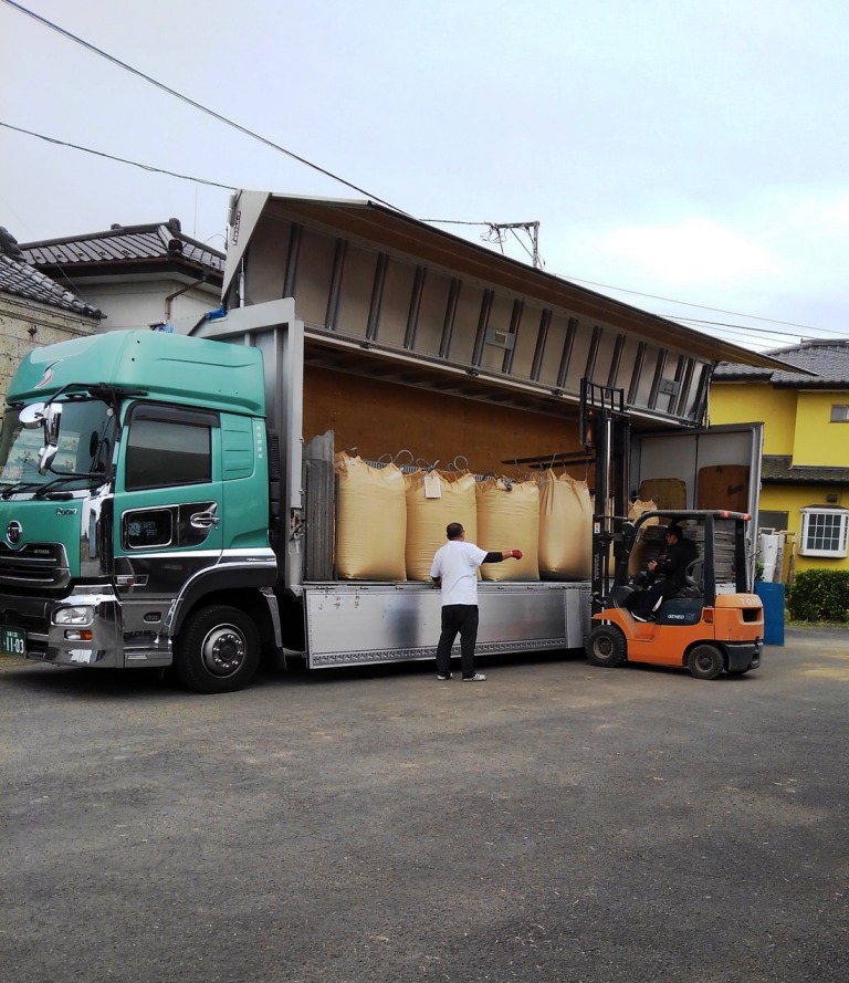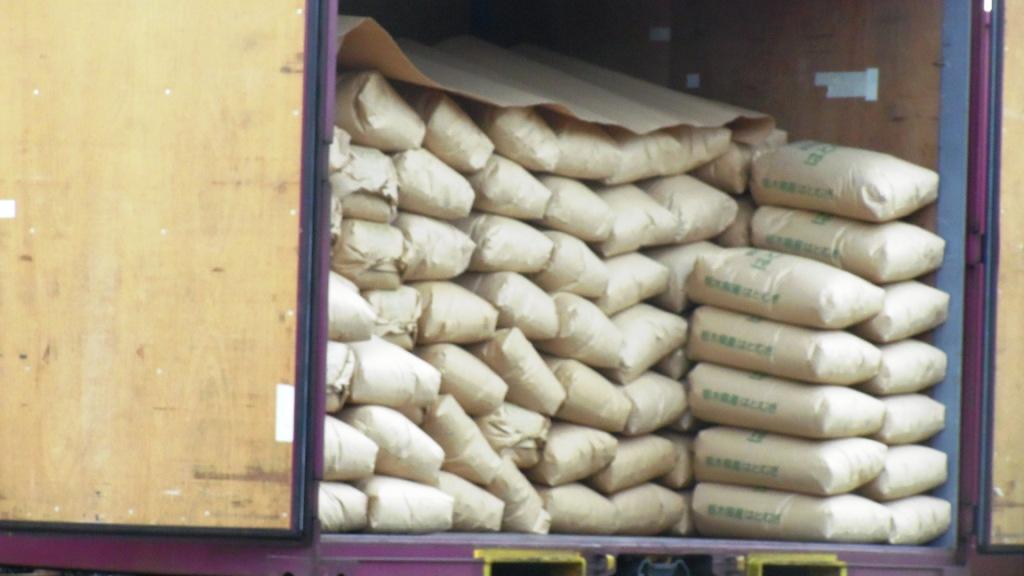 20キロの袋詰めにすると天井までびっしりコンテナに詰め込むことができる。