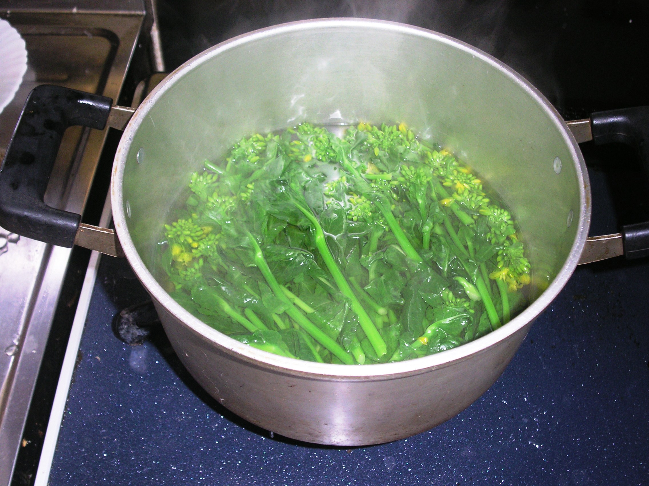 良く洗って、沸騰した湯に入れて2分間うでる。(さっとうでるだけでも良い)