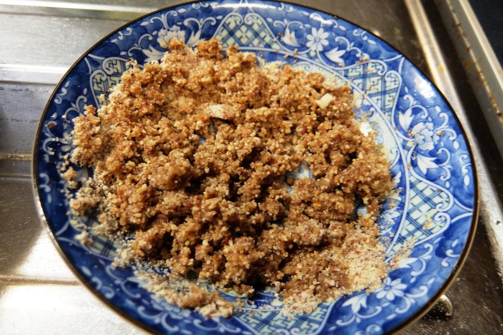 ③粉砕した落花生を砂糖と醤油でまぜる。