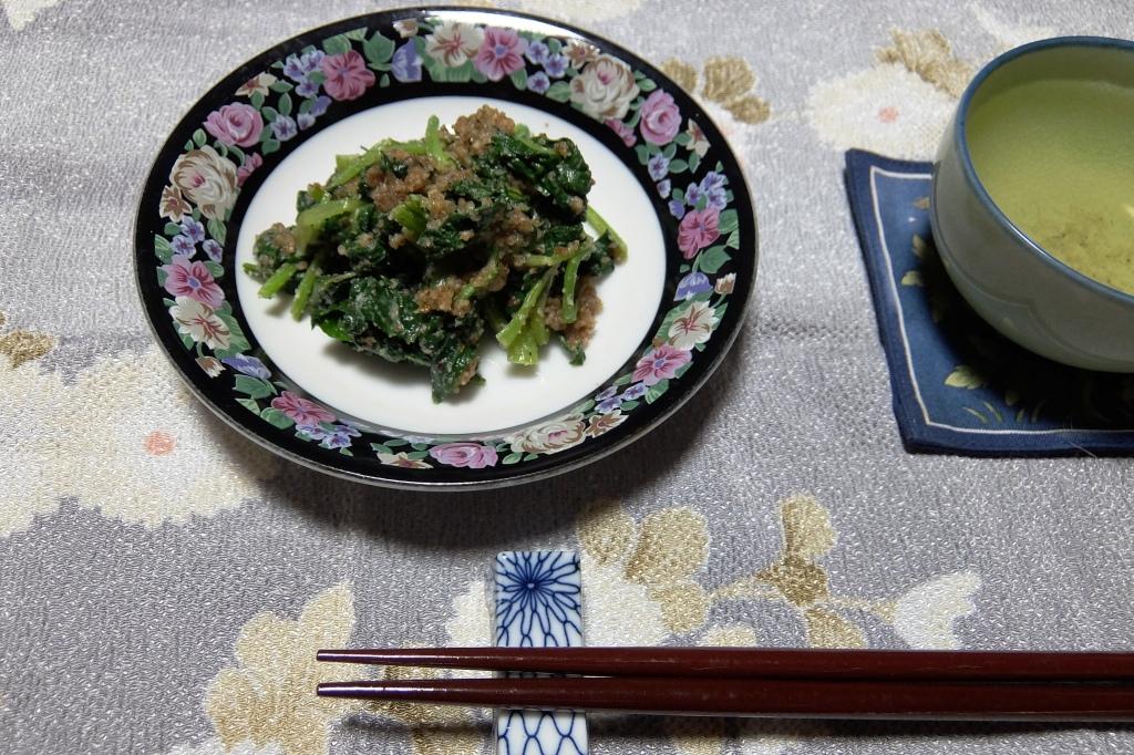 そこで落花生と小松菜の和え物を作ることにした。