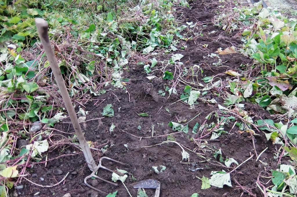 それに深く潜ってサツマが実ったのでなかなか掘れない。