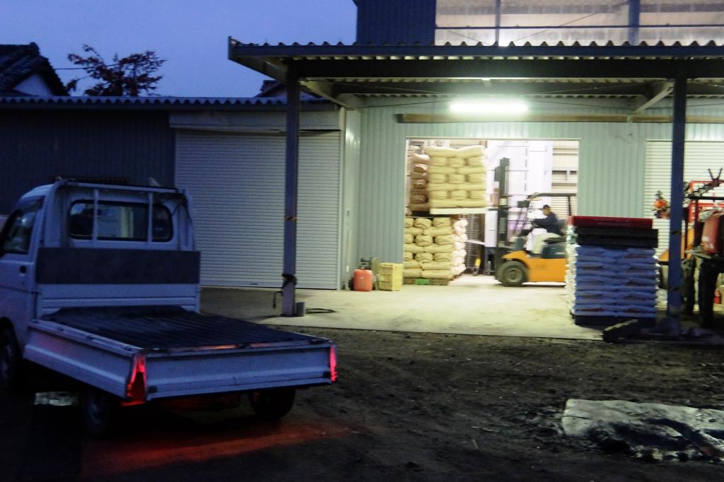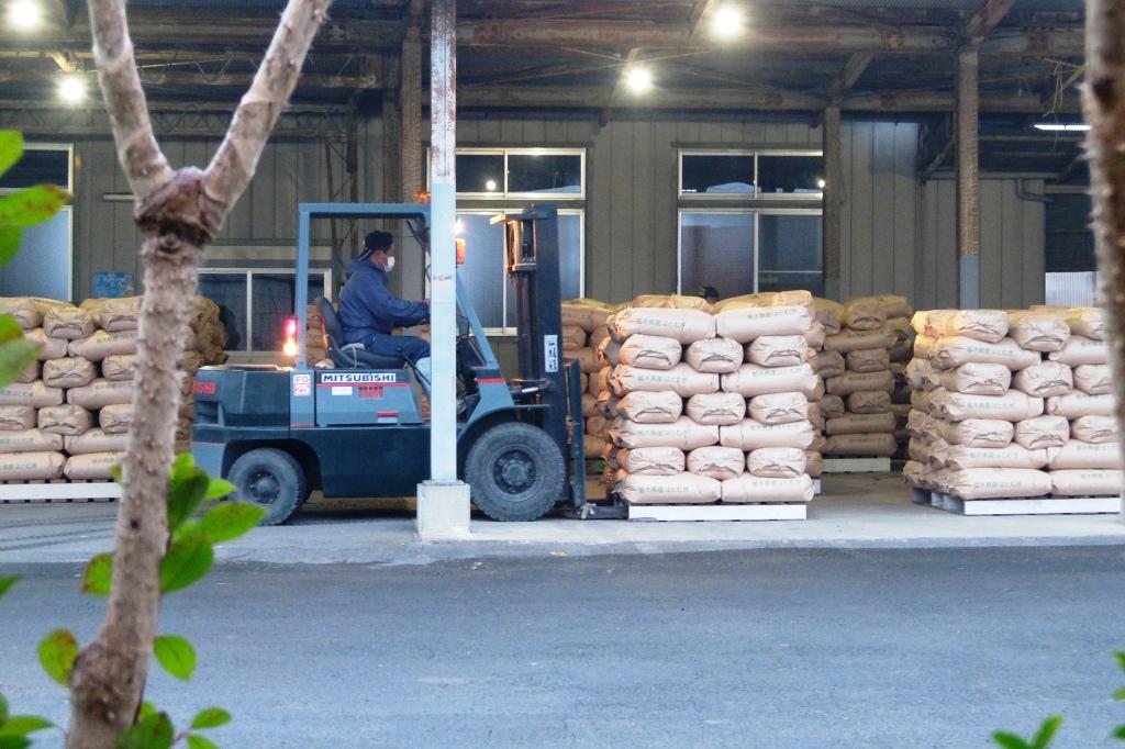 集荷場には生産者がたくさんのはとむぎを運んでくる。