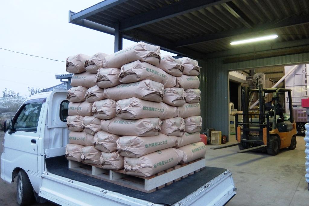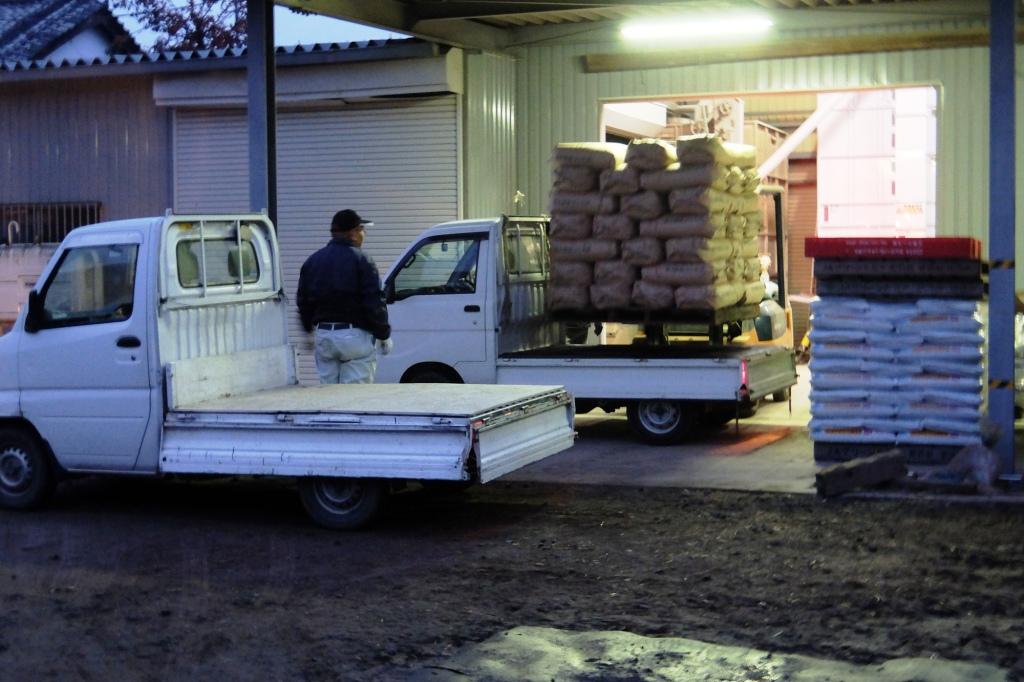 他の家から集まったはとむぎはJRのコンテナに積みかえて運ぶ。