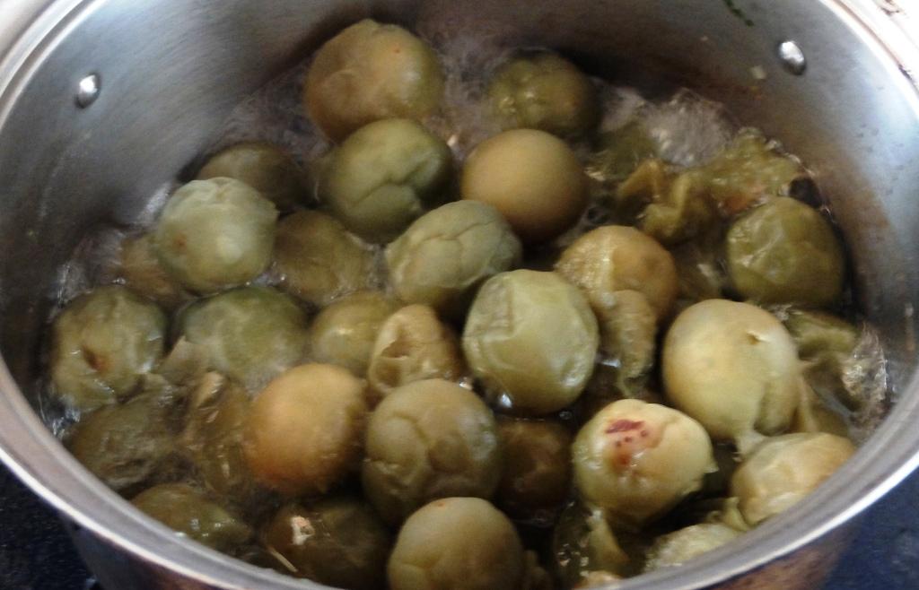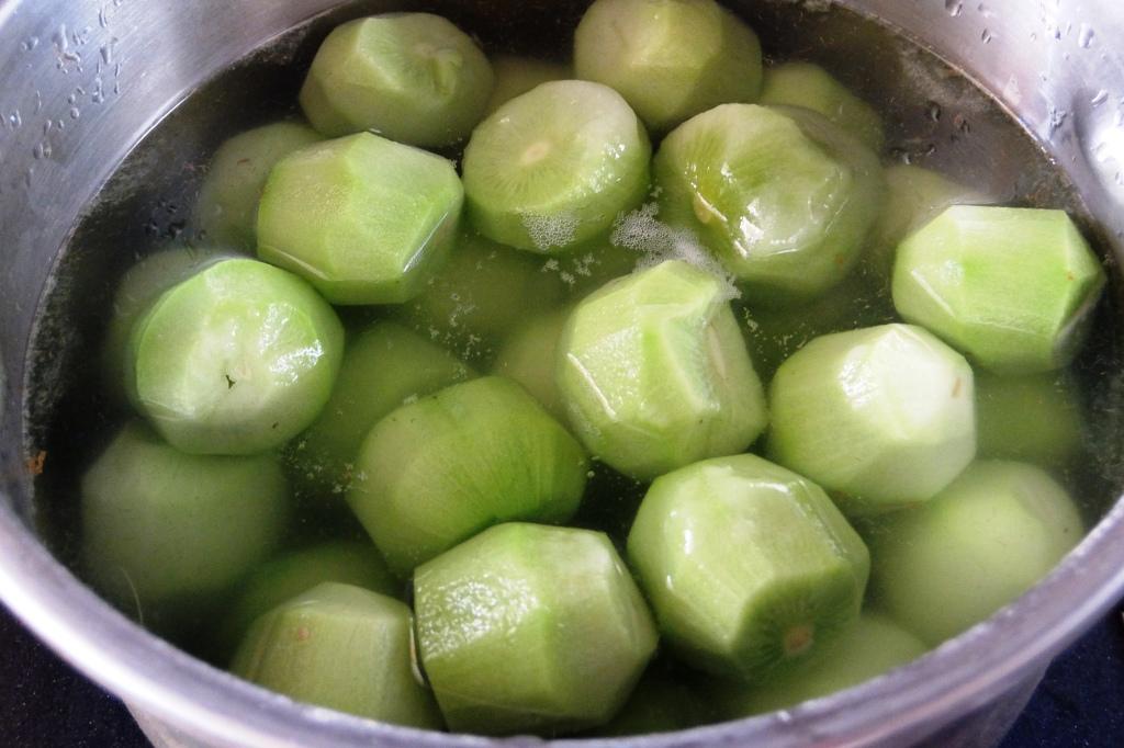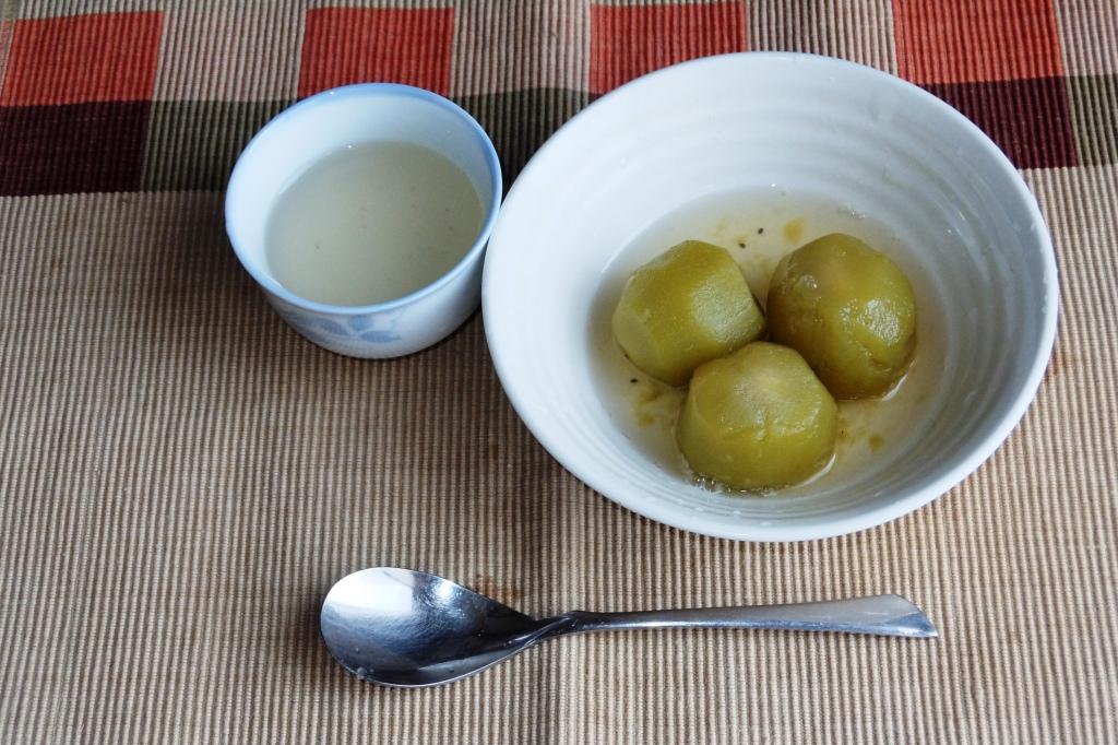 すぐにやわらかくなり種は菜箸で取り除いた。