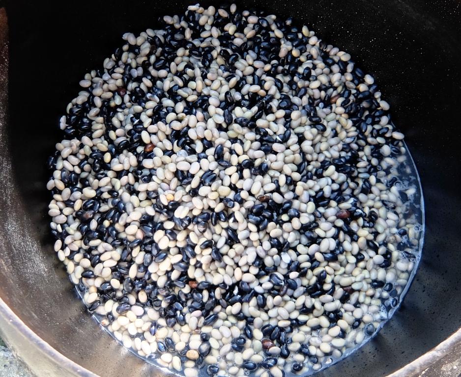 豆は我が家で作った黒豆だけ。塩は瀬戸の塩。最高級の味噌ですよ。