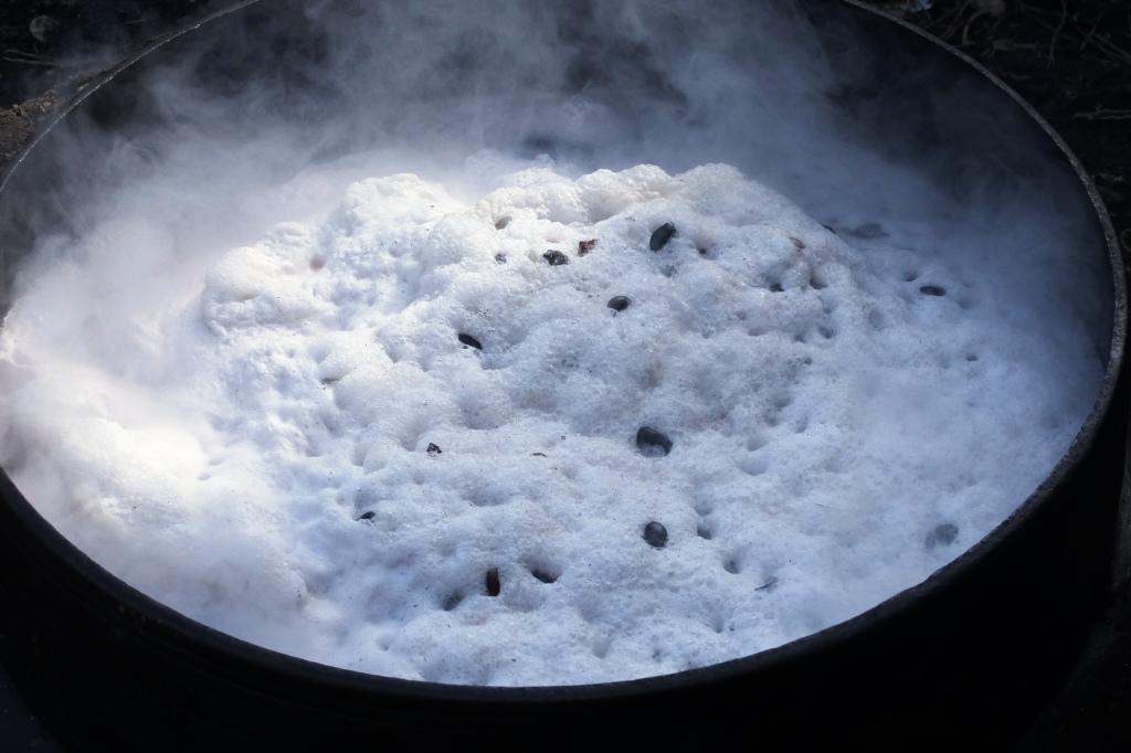 鍋で煮出していただく。はとむぎ独特の香りがほっとする。