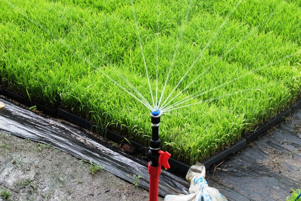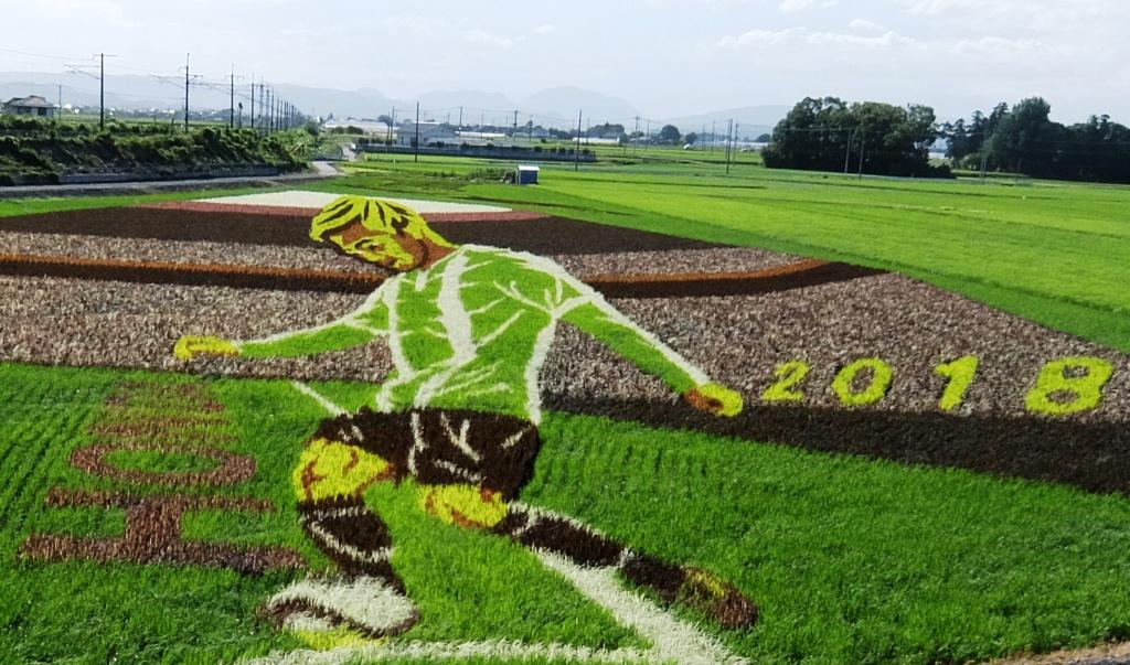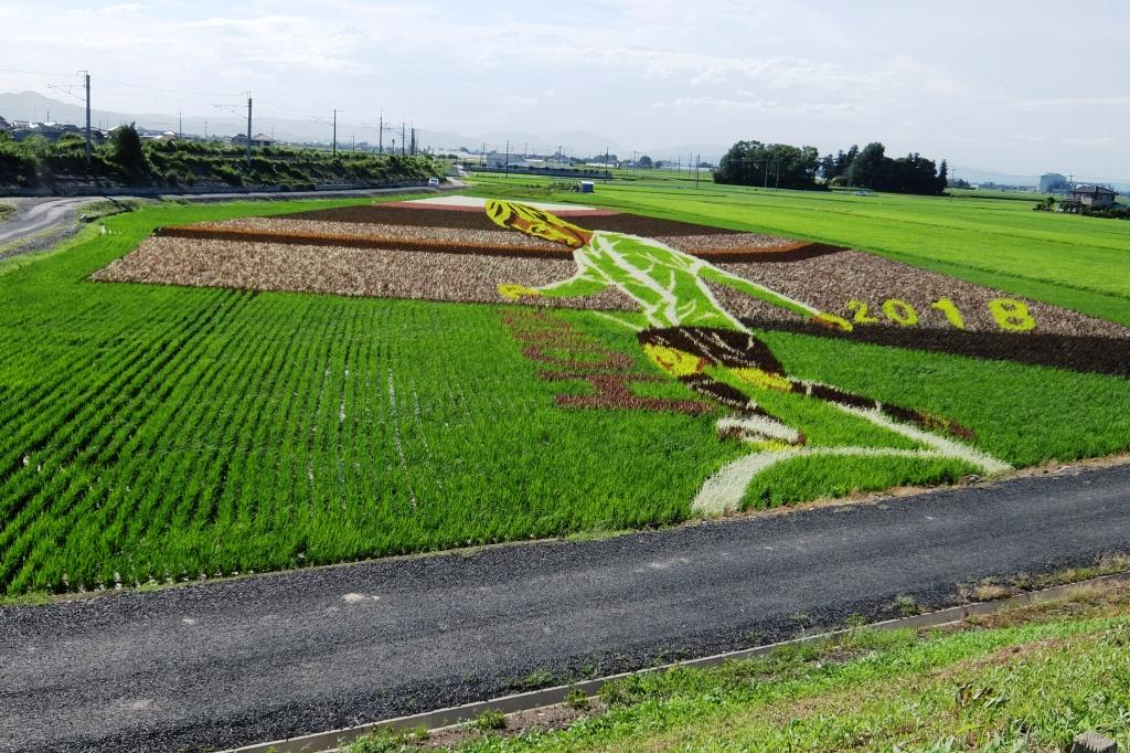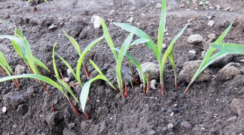 去年イノシシに全滅させられたので、今年は線路わきの田んぼの横に植えた。