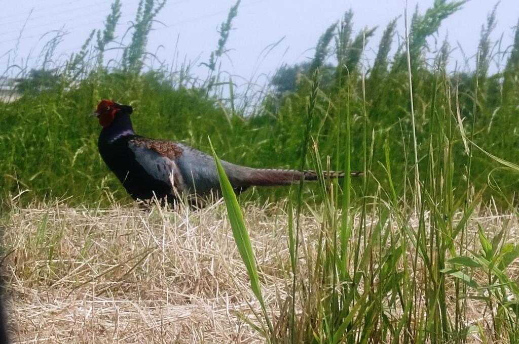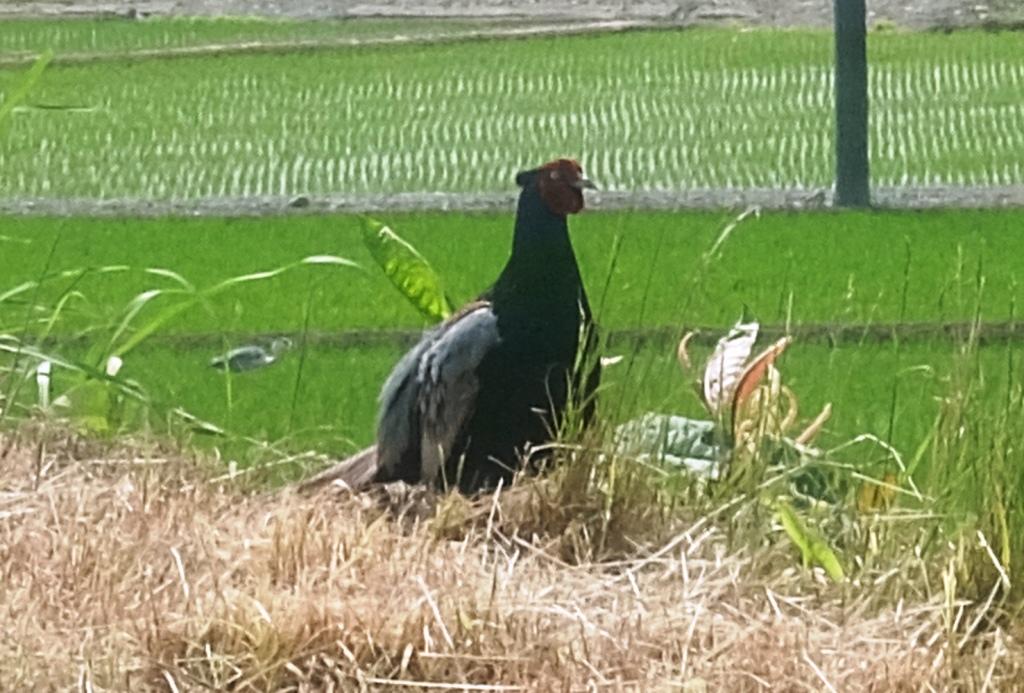 キジはそばまで寄っても逃げ出さない。近くに雌鳥もいる。