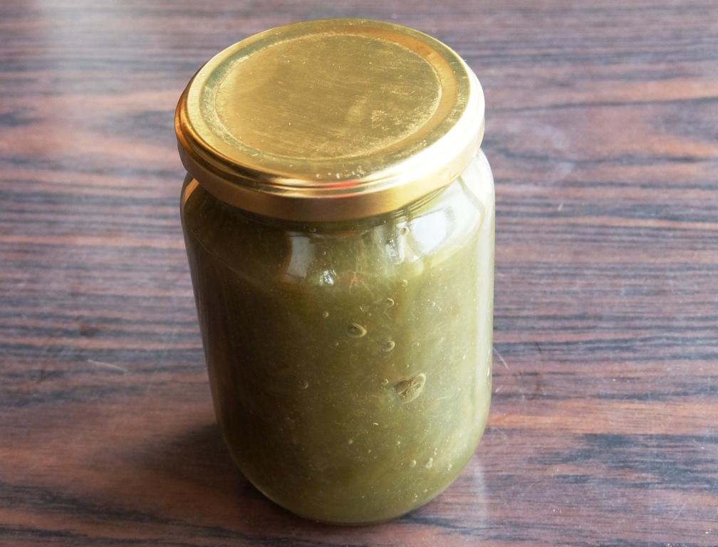 色がキウイフルーツで作ったジャムの緑いろのようだ。