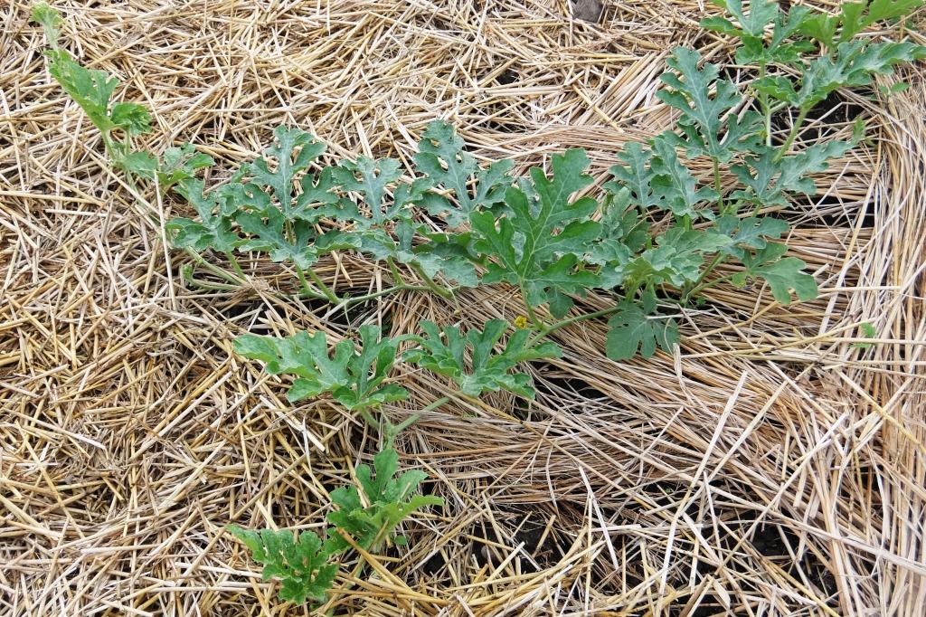 すいかは大玉を5本植えてみた。お盆のころに食べられる。