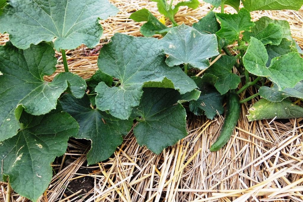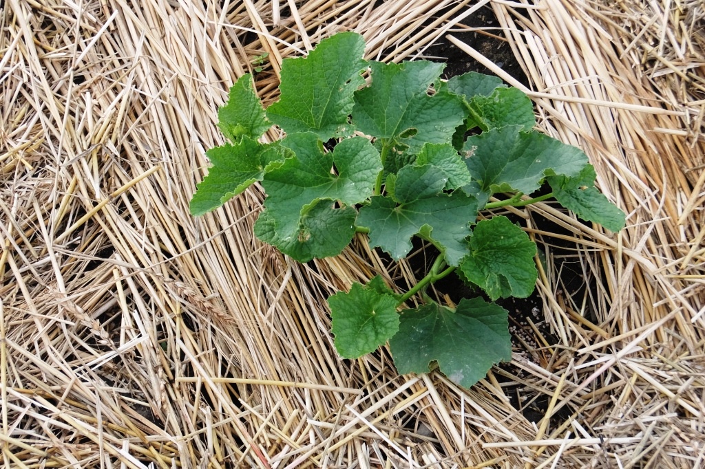 茄子やきゅうりの下に敷いた。きゅうりは地這えきゅうりの種類。