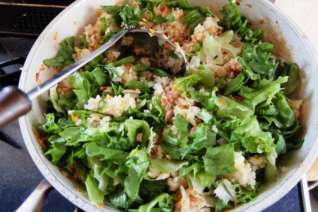 シャッキリ感を出すのには最後に入れて炒めるとおいしい。一分から二分で火を止める。
