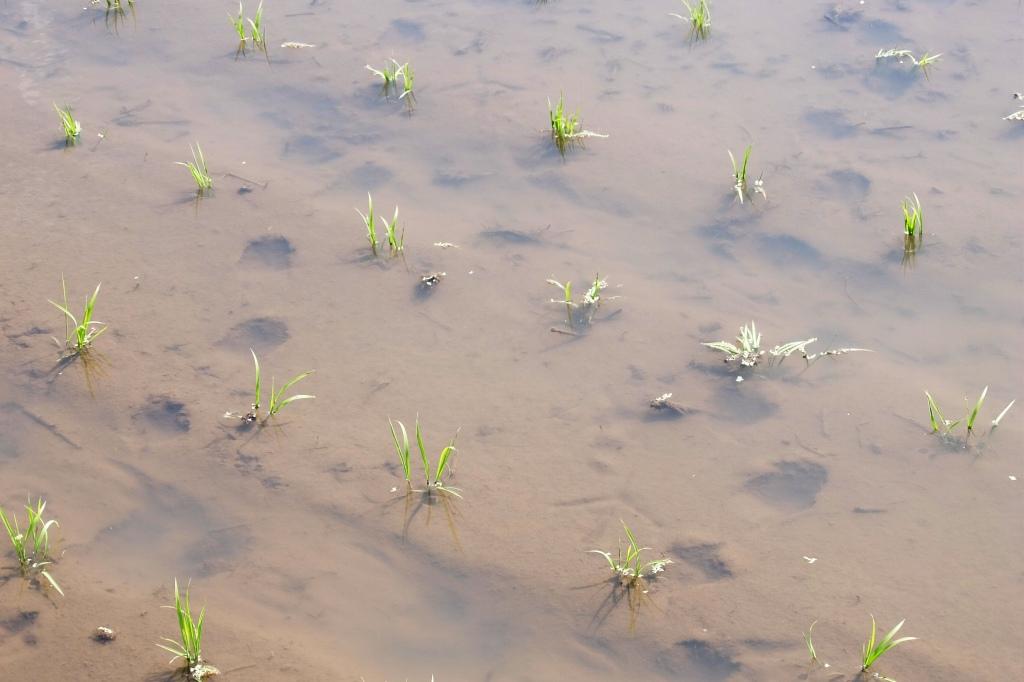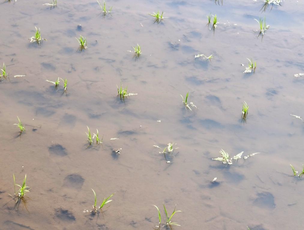 泳ぎ回られた後は苗がなくなっている。苗が小さいときはほとんどが浮き苗になってしまう。