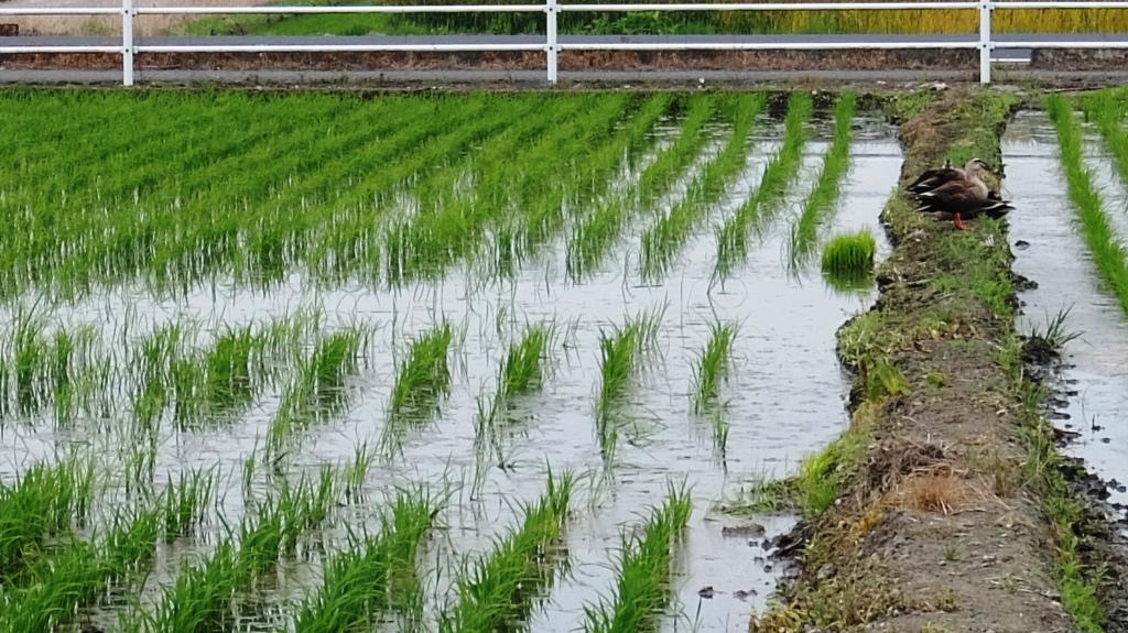 大概は2羽以上でやってくる。泳ぎ回って苗の籾をついばむ。そのあと畦で休んでいる。