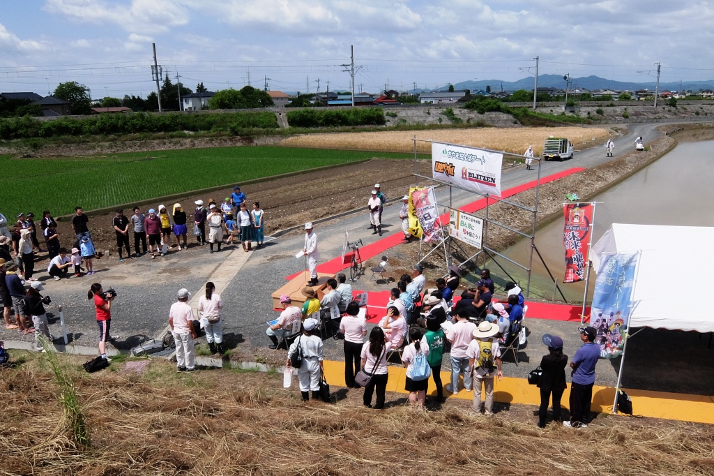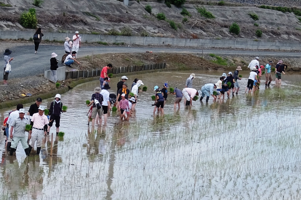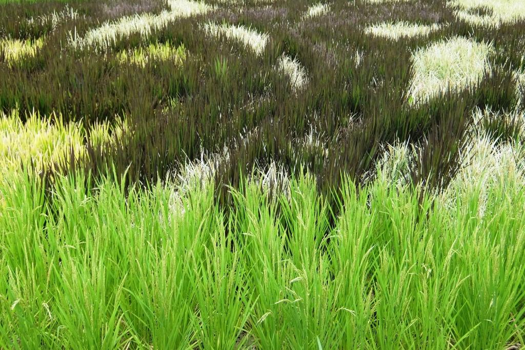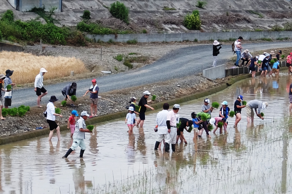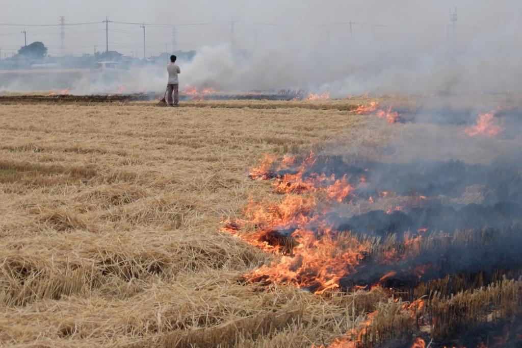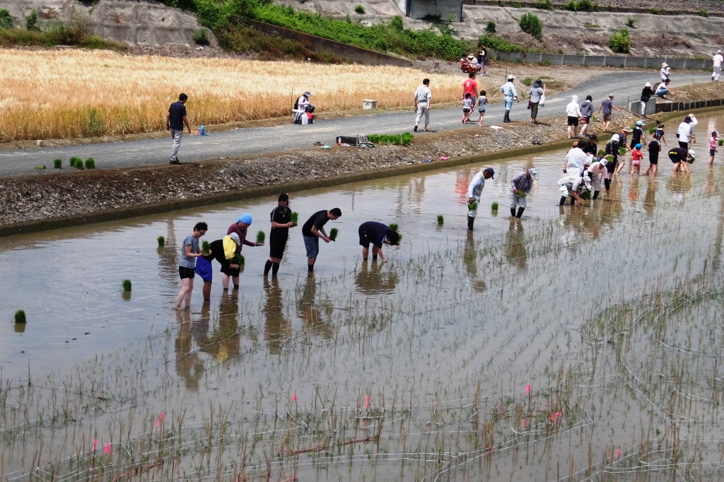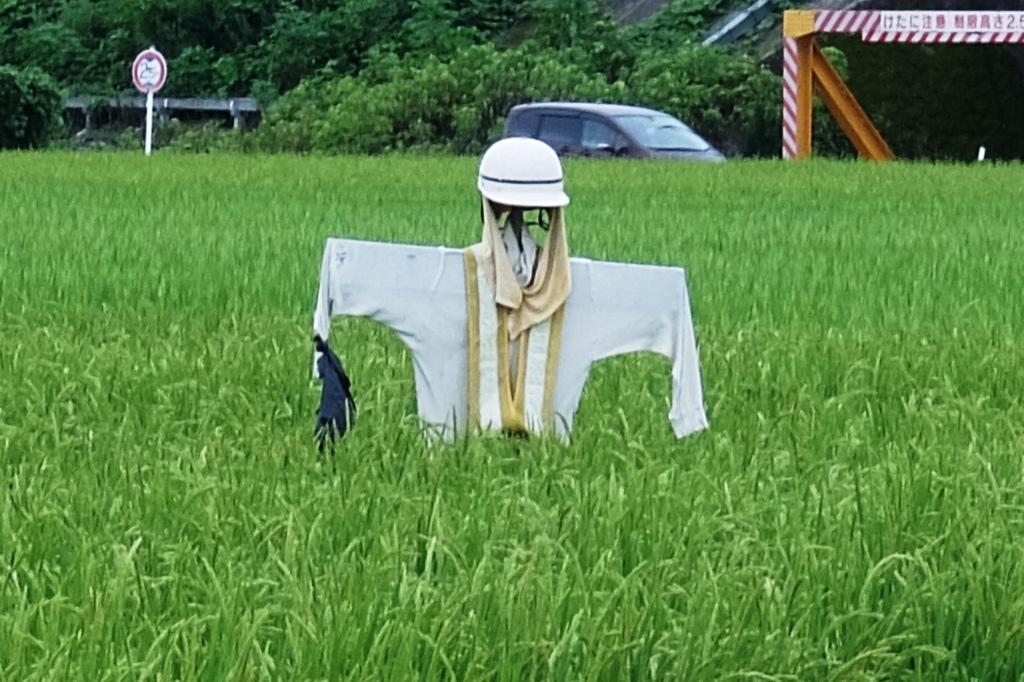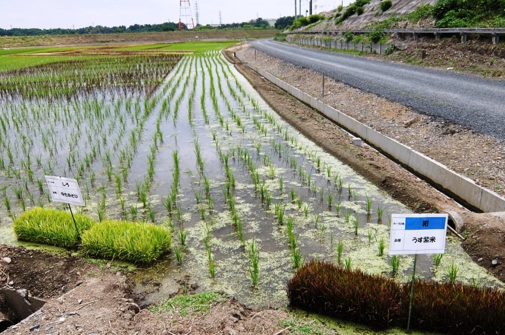 隣の田んぼは、イノシシ対策としてテープやメハジキで囲ったりしている。