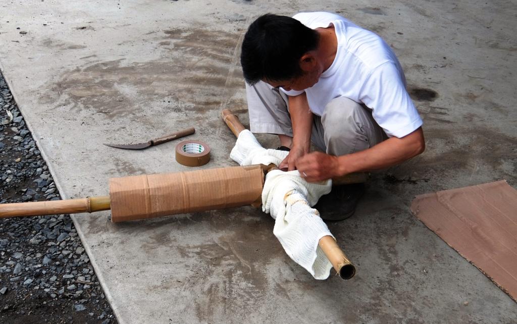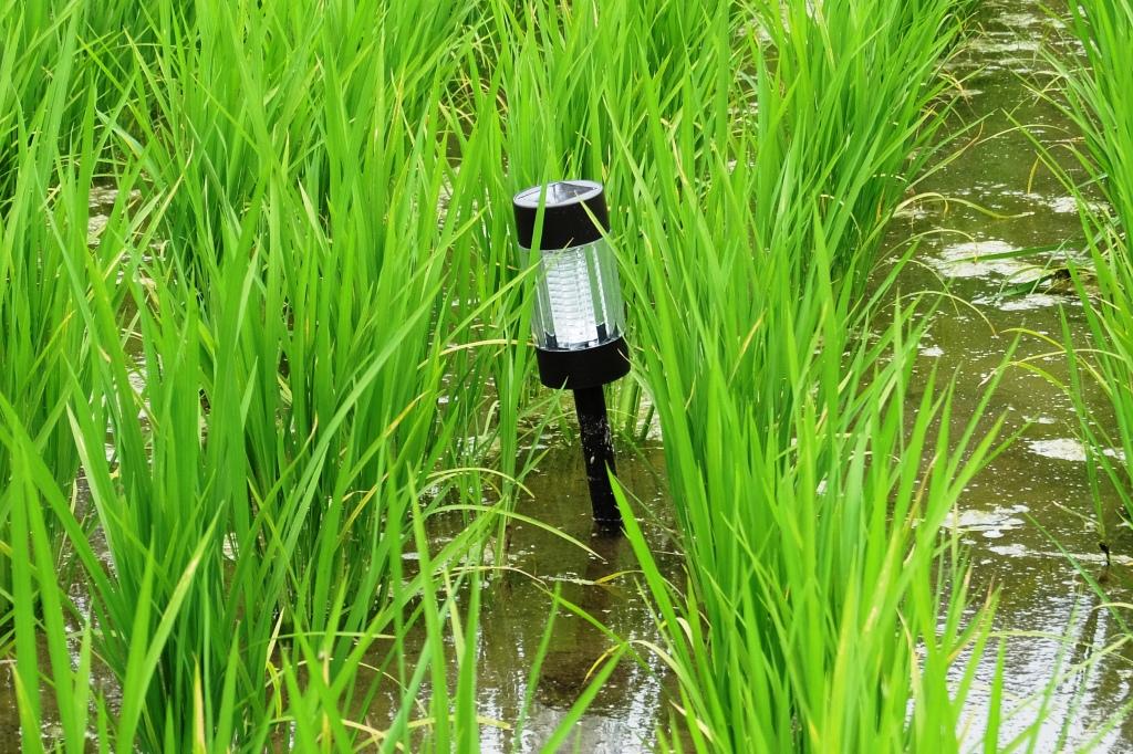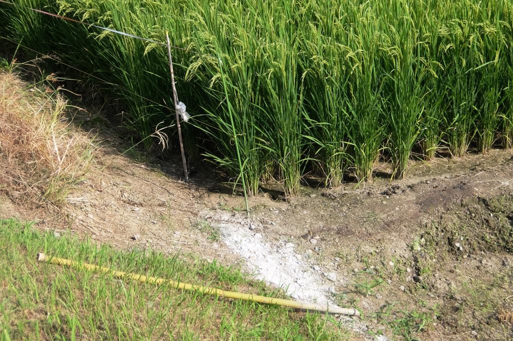 周りの畦に薬をまいて侵入を防ぐ対策をとっている。常夜灯を設置した。