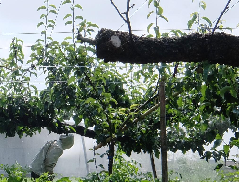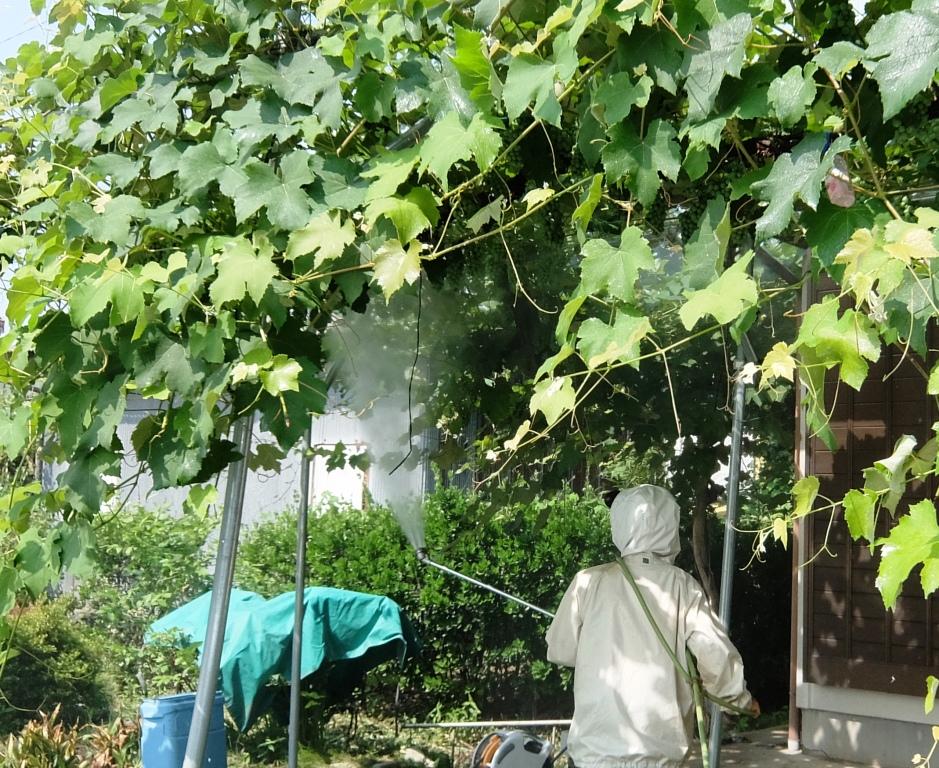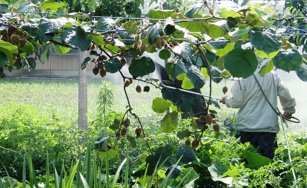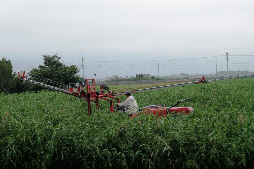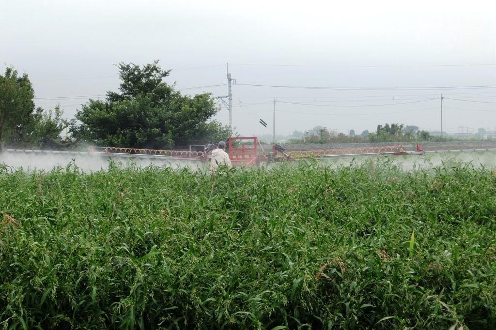 噴射器で 10メートルくらいは肥料が飛んでいく。