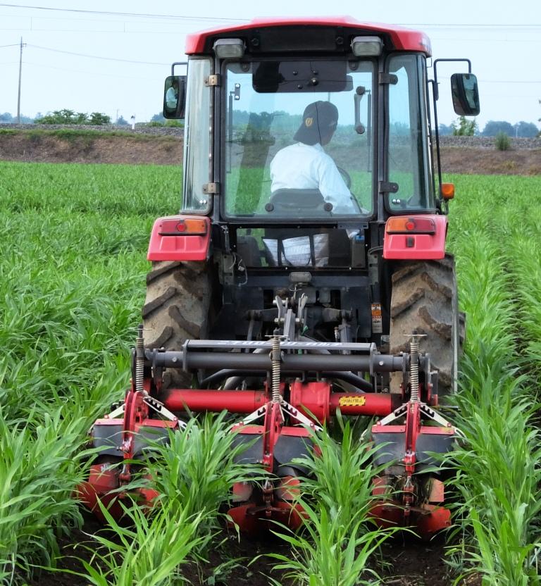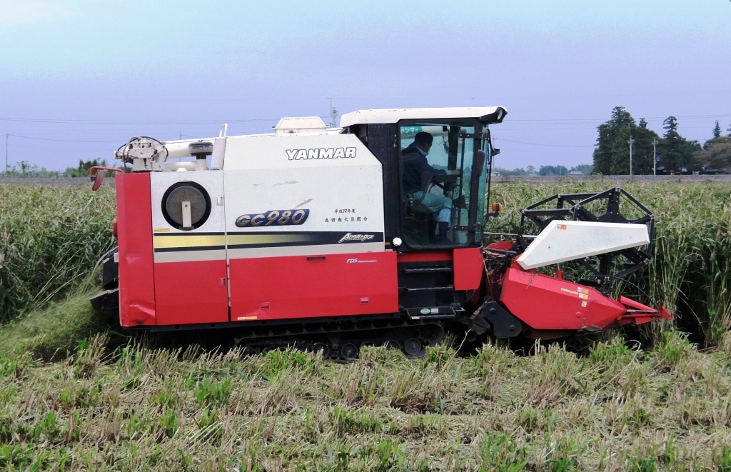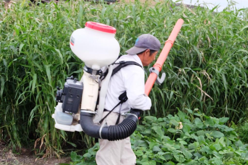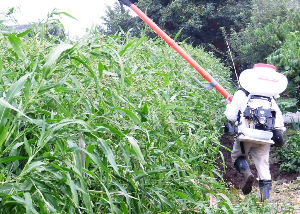 夏は暑いし、重いし、モーターの音はうるさいし、はとむぎ畑は歩きにくいし大変だ。