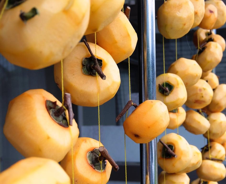 干し柿には寒く乾燥した日が続かないとよくできない。