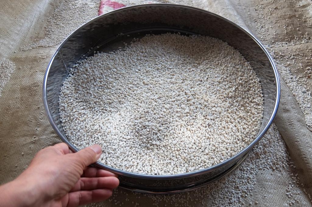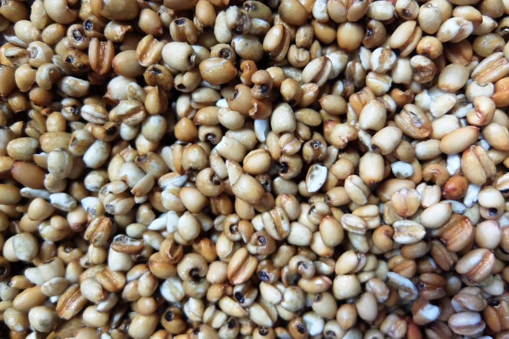 はとむぎの玄米粒、これを煮てお風呂に入れて使う。