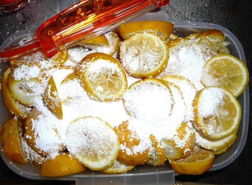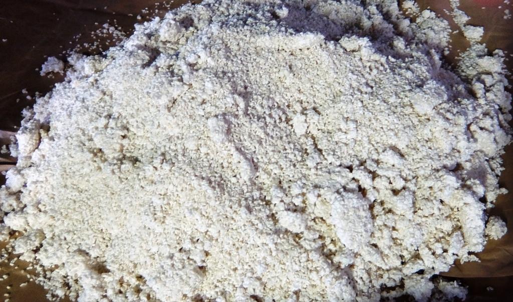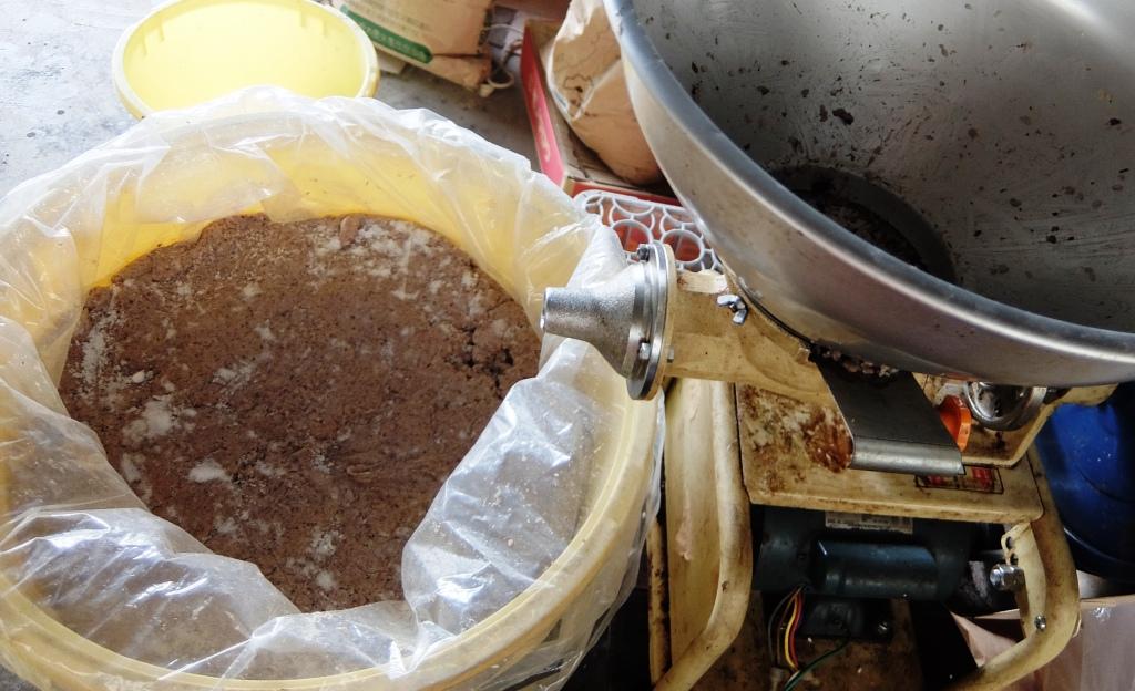 機械ですりつぶし、表面にかびないように降り塩をする。