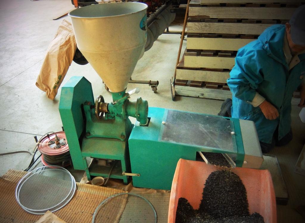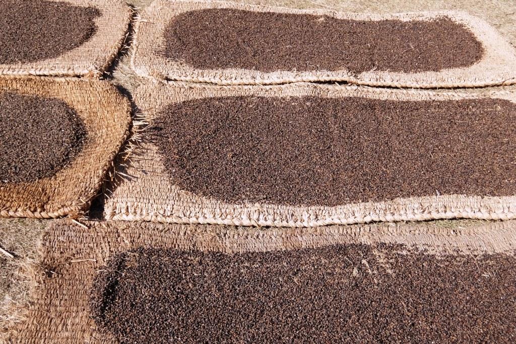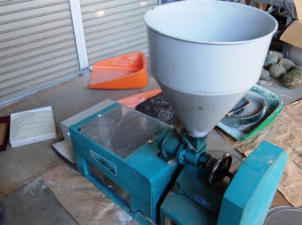 刈り取ったはとむぎは乾燥機に入れてから水分調整に1日以上かかる。