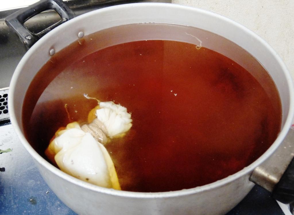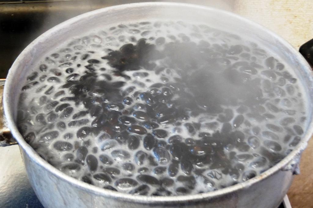 4時間ほど煮た。かんたんに指でまめがつぶせるくらい。