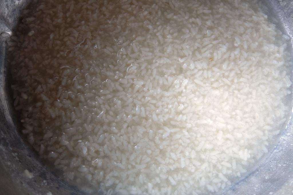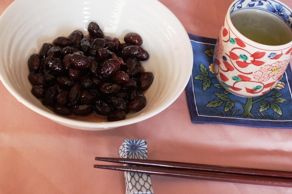昨年12月に収穫した黒豆を1晩浸しておく。