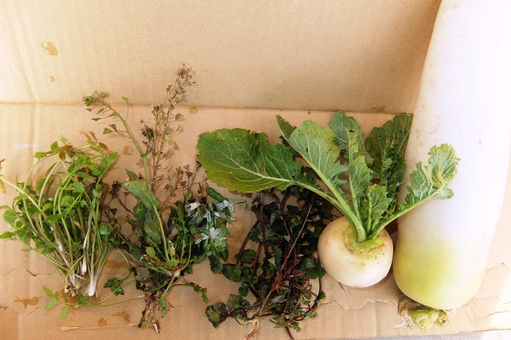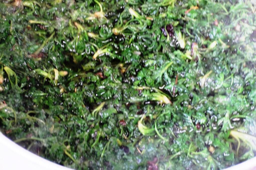 摘んできたものを新芽だけにする。ごみを落としてよく洗う。