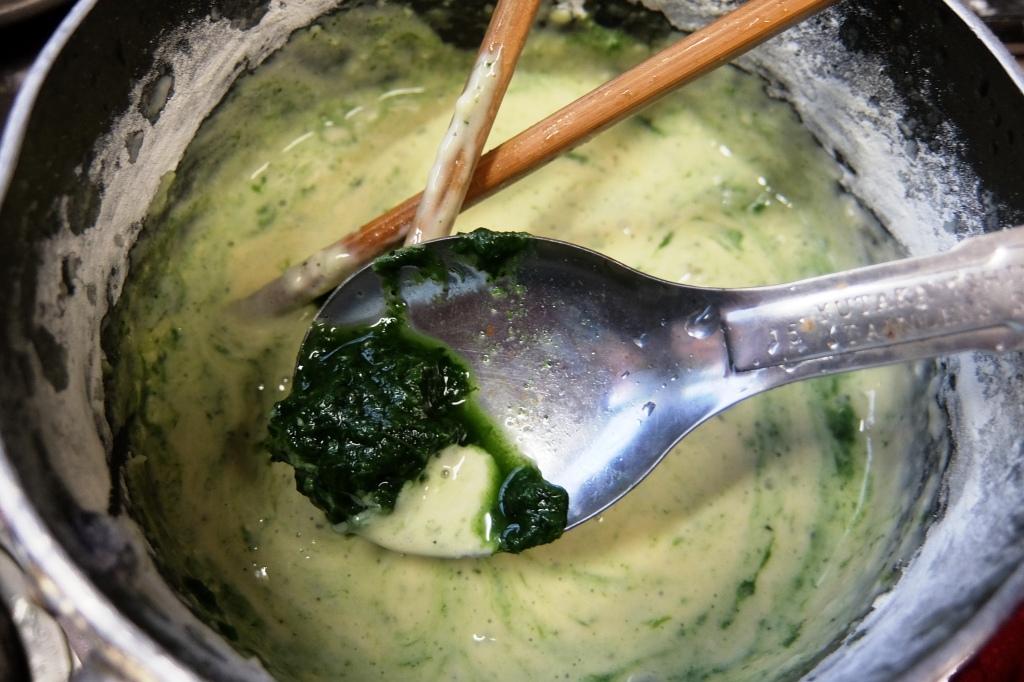 少しミキサーの草が余ったのでヨモギパンを作った。