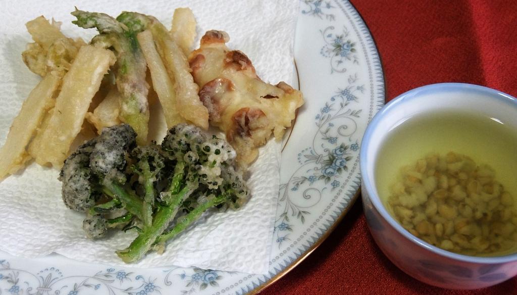 小麦粉にハトムギ粉を入れて天ぷらを作った。