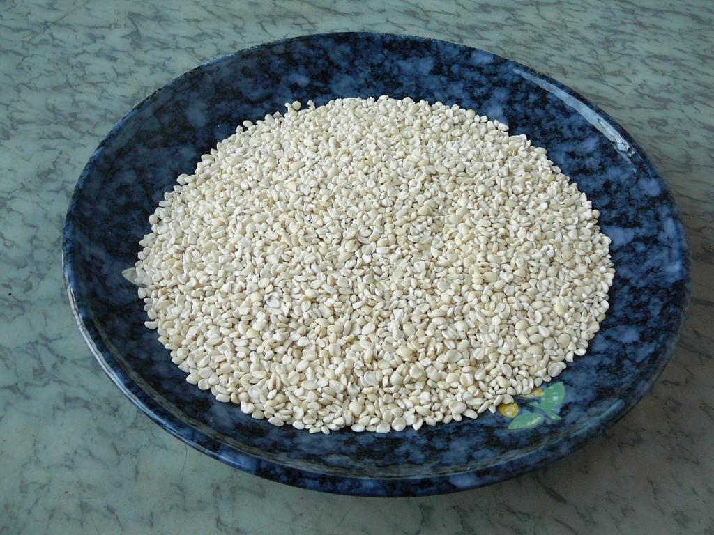 (精白の途中でハトムギはやわらかいので細かく砕ける。)