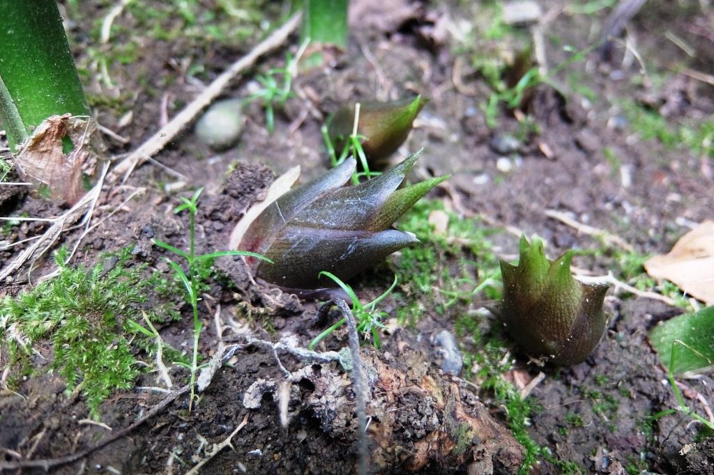 注意 ここはマムシが出る。(ジャガイモの葉の下に身を隠していた。)