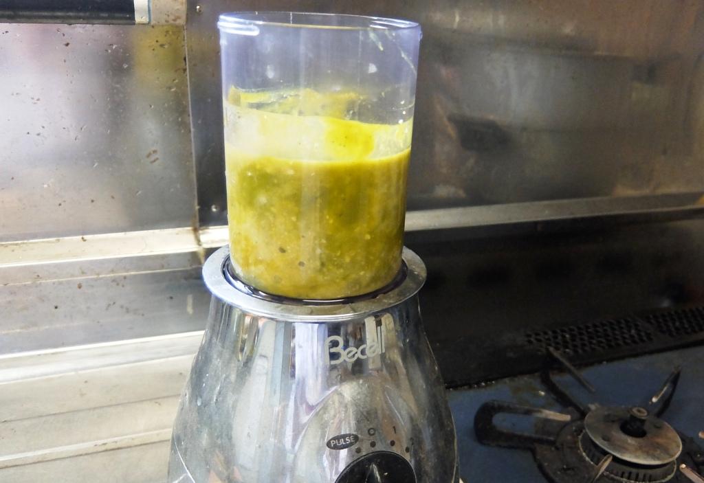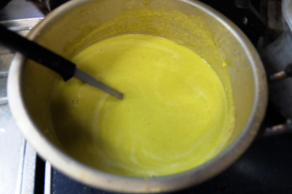 ④ ③と②と合わせてミキサーにかける、①と混ぜる。
