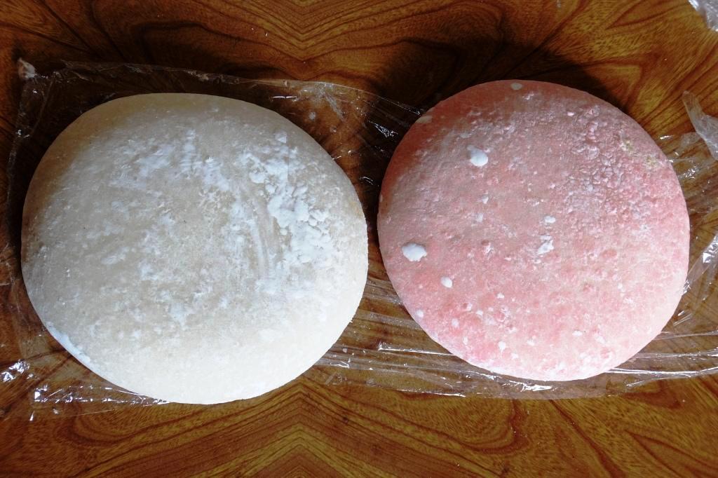 ① 小麦粉 80g ハトムギ粉 10g ベーキングパウダー 5g(1袋)を合わせる。
