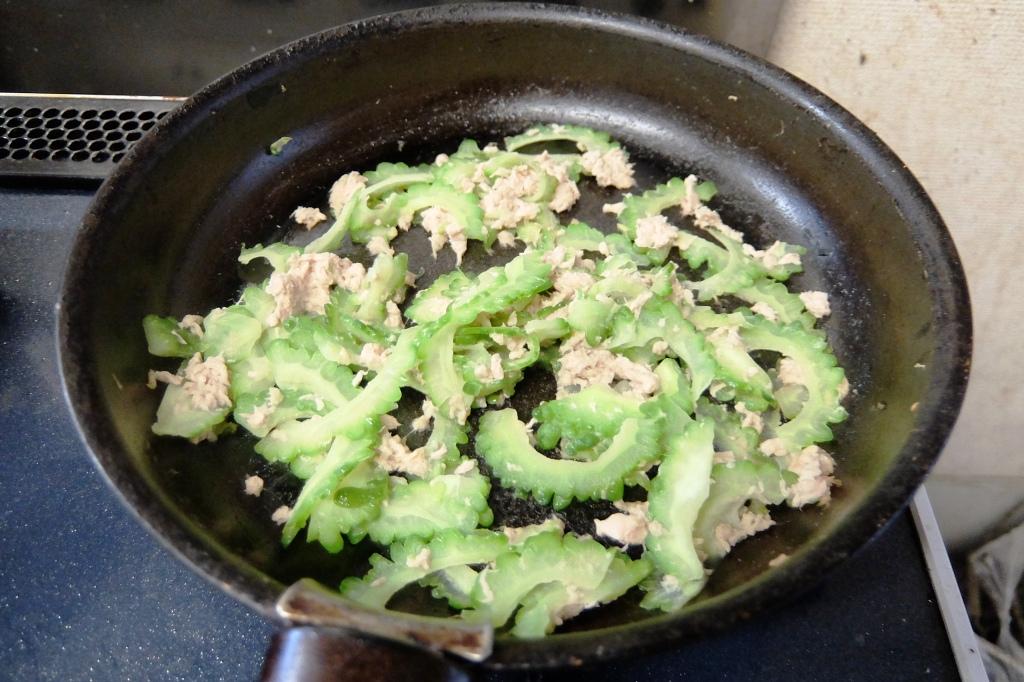 ゴーヤが沢山とれるので簡単でおいしい3分料理をする。