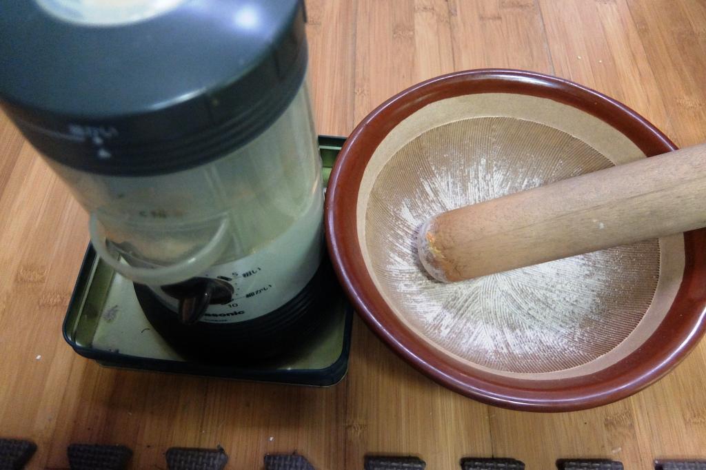 少しずつならお茶を粉に挽く機械(上の写真)を利用して粉にする方法
