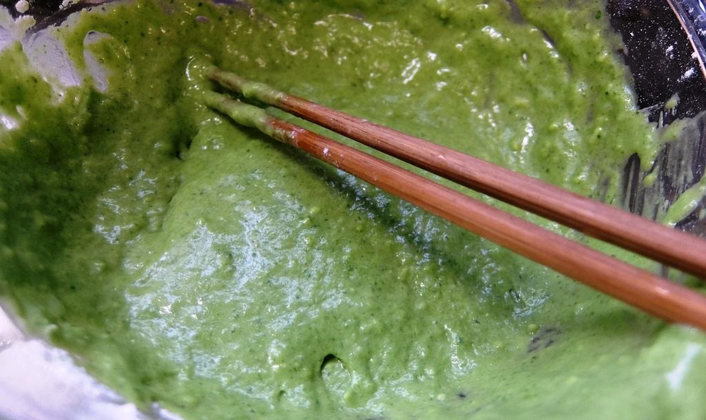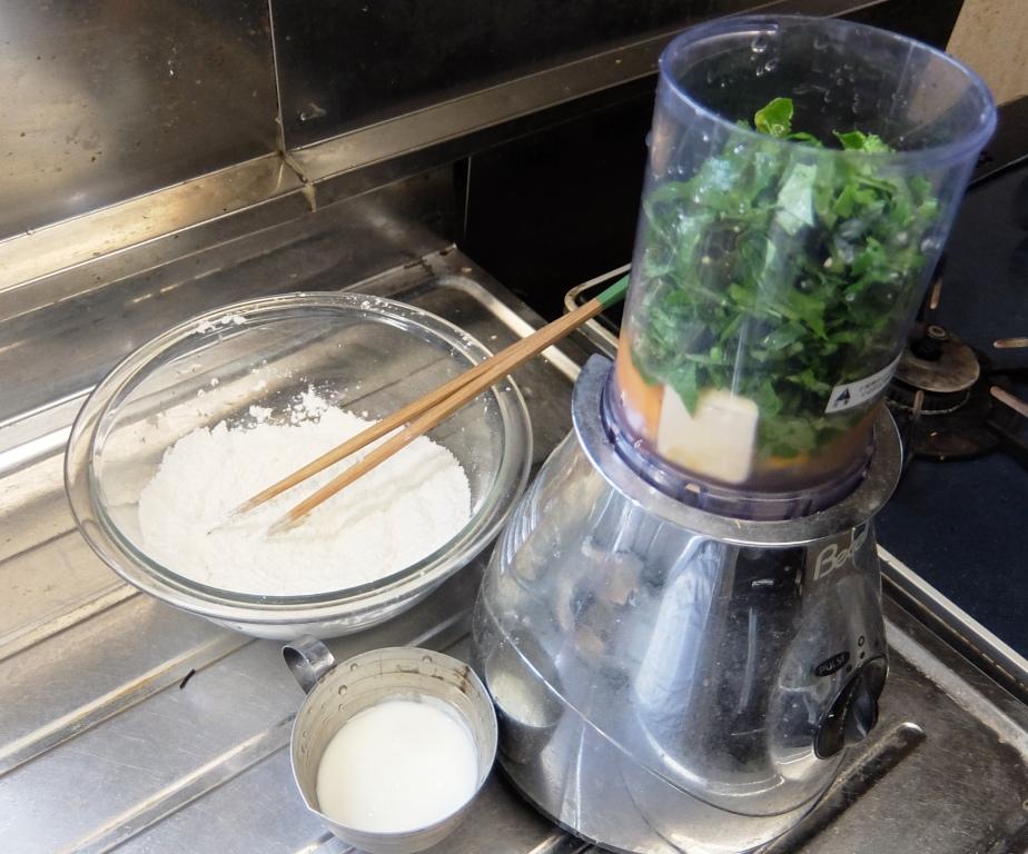 ハトムギ粉と小松菜の蒸しパンケーキ作り