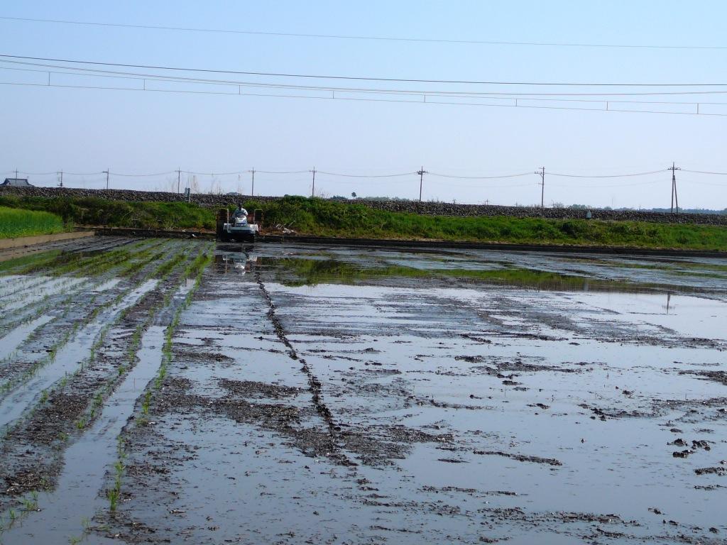 連休から始まったが、カモに入られて手直ししたりシラサギが苗を踏み荒らしたりしたので手直しが大変だった。