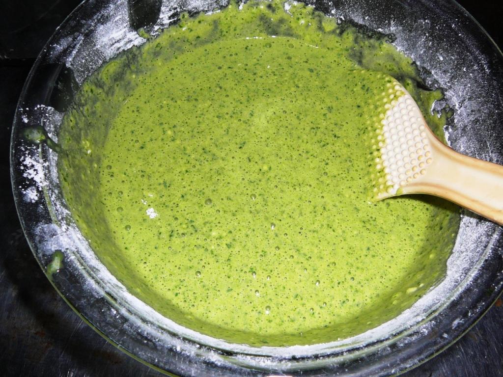 小松菜やビタミン菜が育っているので蒸しケーキを作ることにした。